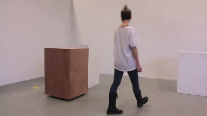 Mon projet s’articule donc autour de ces concepts. Je voulais dynamiser l’expérience d’une œuvre minimaliste. Je trouve que la relation créée entre l’objet et le spectateur est particulièrement intéressante. Par contre, je trouve que cette relation est aussi particulièrement unilatérale. On parle de présence, de théâtralité, de relation, toutes choses qui m’intéressent particulièrement dans mon désir actuel de rejoindre un spectateur non-initié à l’art, mais on parle de tout ça en faisant référence à un objet inanimé qui n’engage pas systématiquement ce genre de réflexions chez le spectateur. Le fait que l’objet soit figé sur place vient certainement renforcir son objectité, mais je crois qu’il y ait moyen de déplacer l’objet sans toutefois l’empêcher d’assumer ses qualités d’objet. En faisant déplacer un objet minimaliste dans l’espace, je dynamiserais la relation entre le spectateur et l’objet. Ces déplacements viendraient mettre drastiquement en évidence la présence de cet objet dans l’espace et le rendrait encore plus contextuellement dépendant, à la fois à son espace, à la fois au spectateur. Cette supposition est vraie pour le spectateur aussi. Par le déplacement de l’objet, le spectateur se voit en constante réévaluation de sa propre position dans l’espace et par rapport à l’objet, mettant en évidence sa propre position dépendante de la position de l’objet. De plus, aucun spectateur ne pourrait expérimenter la relation de la même façon, renforcissant aussi l’absence de “presentness” de l’objet.